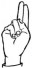 На ћирилици написано АЛЕКСАНДРА ЂУДУРОВИЋ састоји се из 19 слова [?]. Исписано ћириличном једноручном азбуком за глувонеме: